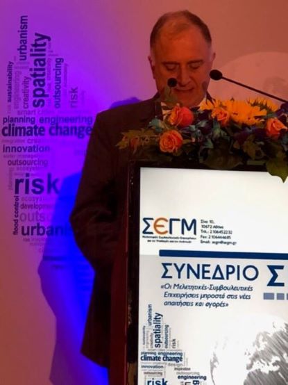 Στην πρώτη ημέρα του Συνεδρίου του Συνδέσμου Ελληνικών Εταιρειών - Γραφείων Μελετών (ΣΕΓΜ), με θέμα «Οι Μελετητικές - Συμβουλευτικές Επιχειρήσεις μπροστά στις νέες απαιτήσεις και αγορές», που λαμβάνει χώρα το διήμερο 26-27 Σεπτεμβρίου 2019, απηύθυνε χαιρετισμό ο Πρόεδρος της Ε.Α.Α.ΔΗ.ΣΥ., κύριος Γεώργιος Καταπόδης.